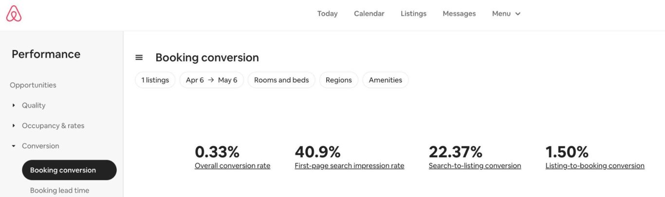 So, how often is your property featured on the first page of Airbnb? Well, Airbnb calls this metric "first page search impressions," and you can find this number under