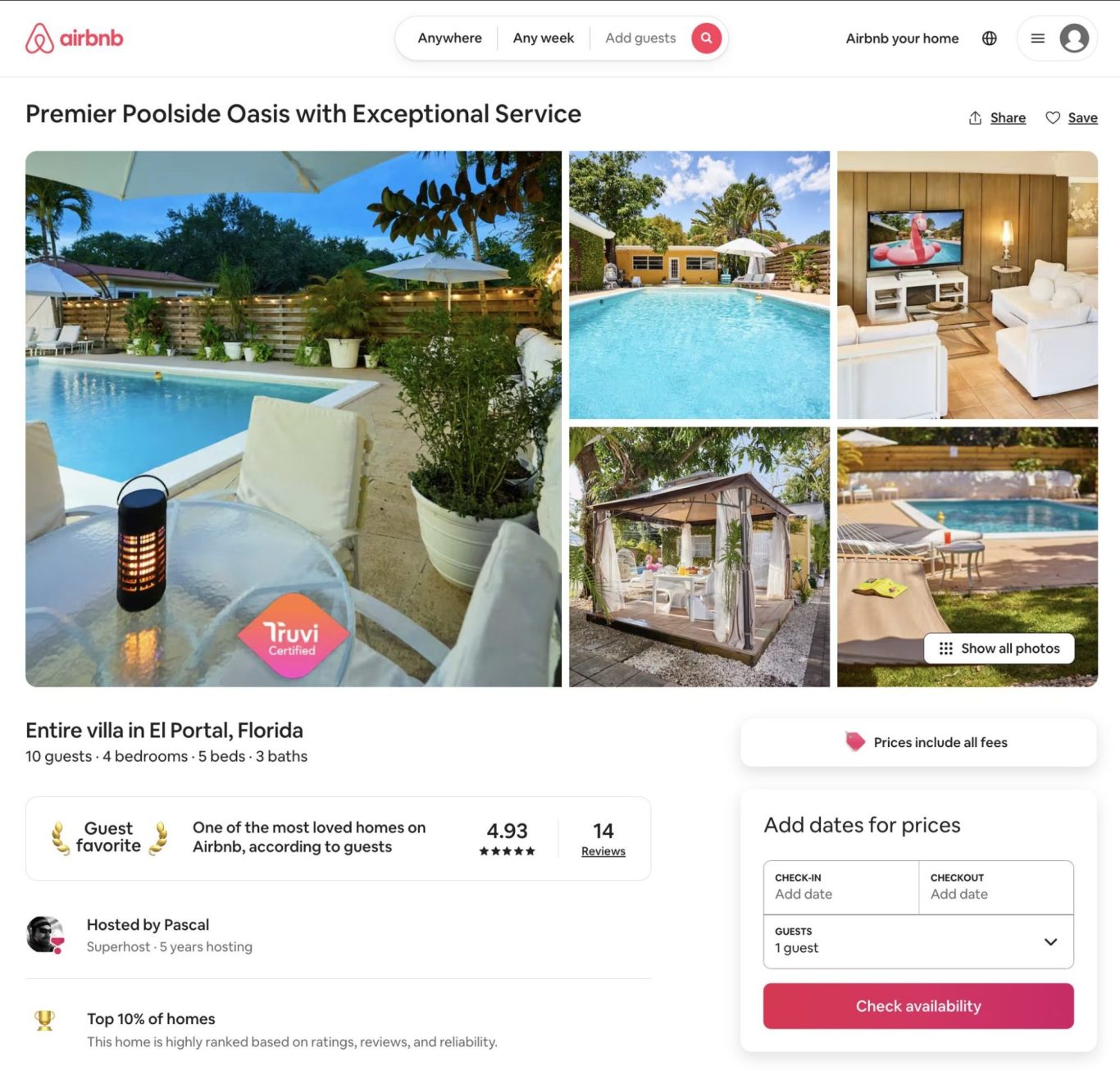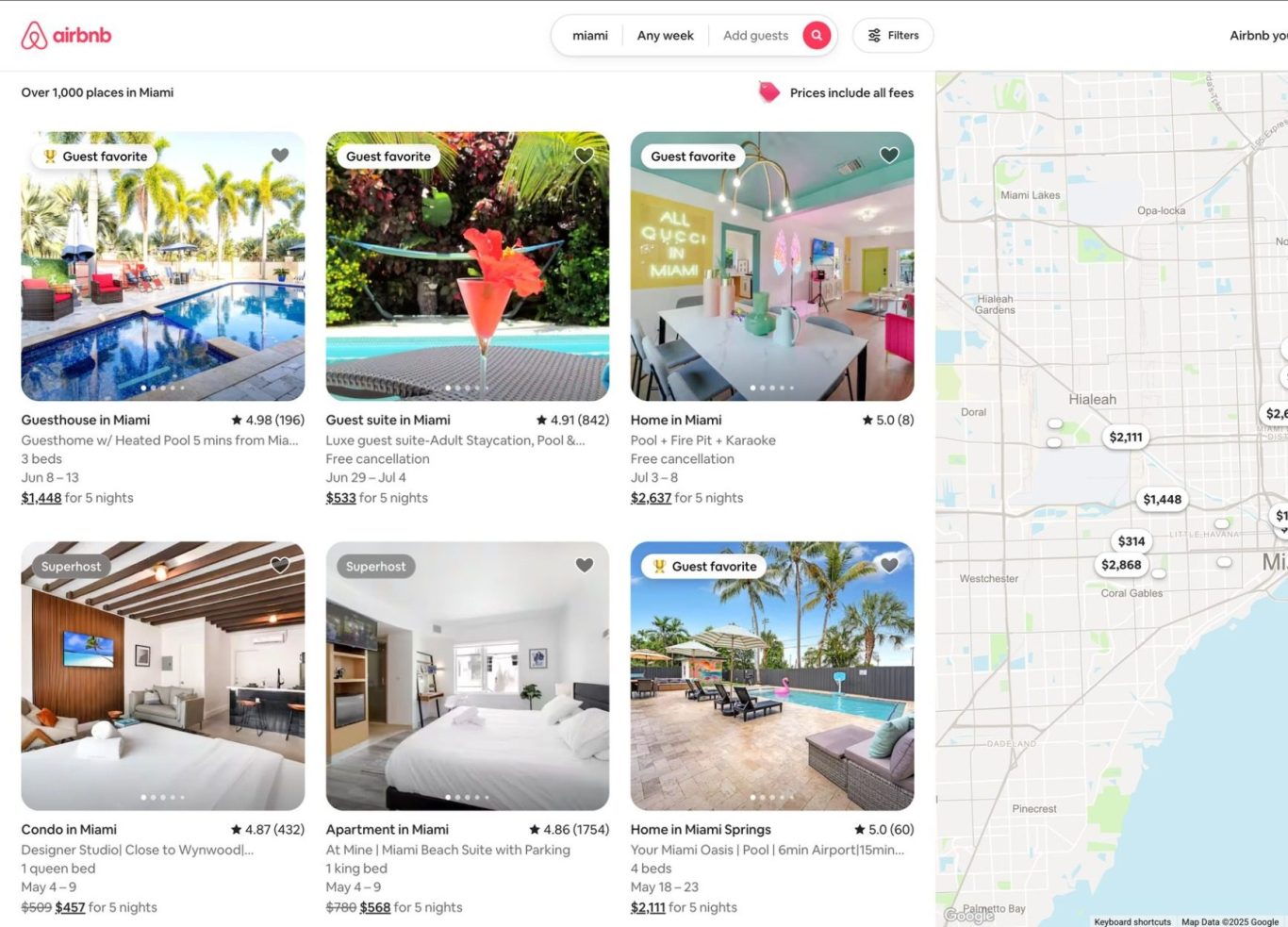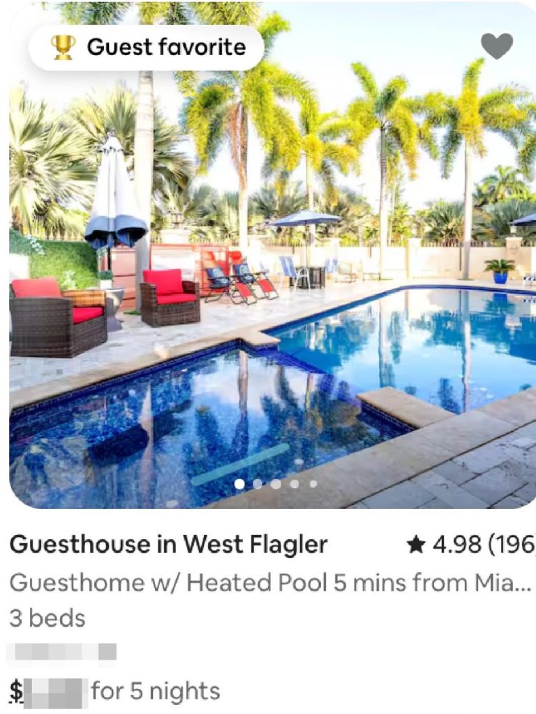 So let's look at one of the listings on the first page of Airbnb when I search for a place in Miami. If this is your listing, congrats on being placed so highly - obviously you're doing something right.