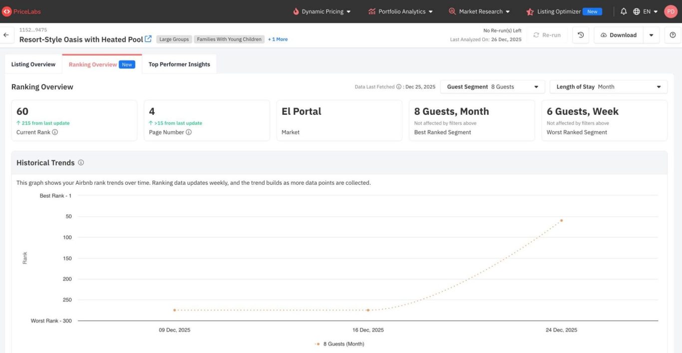 We’ve been actively optimizing our listings for over a year now, and with Pricelabs Listing Optimizer, one of our listings went from buried on page 15 to page 4 on Airbnb in one week. Yes, it’s a paid service, but it looks like what they are promising actually works. Our second listing jumped from page 15+ to page 2.